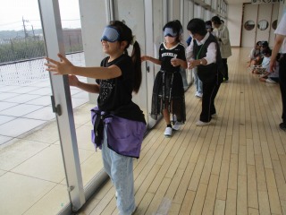 10月1日(水曜日)に講師の方をお招きし、アイマスク体験と手話体験を行いました。アイマスク体験では、目が見えないことの怖さや大変さを実感していました。手話体験では、自分の名前や挨拶を教えていただきました。