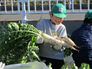 「毎年いろんな形の大根がぬけるのが面白い。」「どんな料理になるのか楽しみ。」など子どもたちは楽しそうに活動していました。