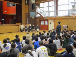 1月20日に原爆詩・被爆体験朗読会を行いました。原爆に関する動画を見たり、被爆者の詩を朗読したりすることを通して、社会の授業で学んでいる戦争について、学びを深めることができ、平和の大切さを改めて実感することができました。