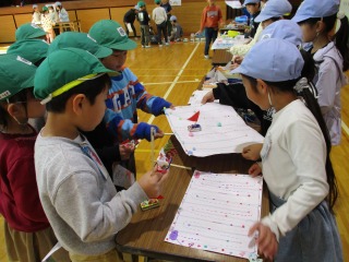 12月12日(金曜日)生活科の学習で、1年生を招待しての「おもちゃランド」を実施しました。2年生は、1年生に喜んでもらうため、様々な手作りおもちゃを準備しました。実施後の感想では、「1年生が楽しんでくれたのがうれしかった。」と満足した様子も見られました。