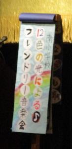 今年度は「フレンドリー音楽会」という題で、「虹」の歌と「おどるポンポコリン」のダンスをやりました。「虹」は、歌に合わせて手話を入れて、「おどるポンポコリン」は、高学年がフラッグの演技も入れて発表しました。